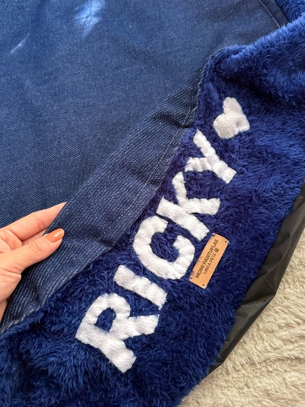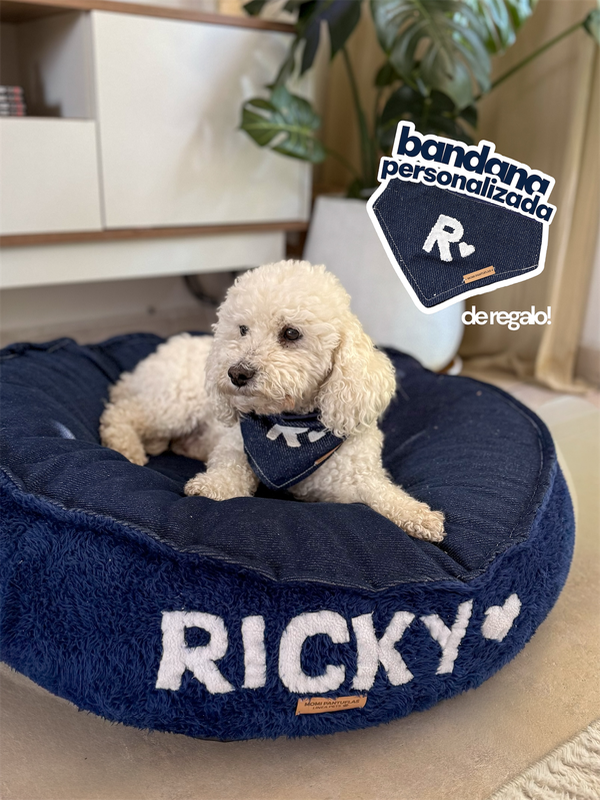 👖 Confeccionada en tela de jean resistente, fresca y antidesgarro, perfecta para mascotas inquietas que suelen rascar o jugar sobre su cama.